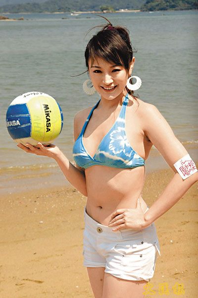 ■被指是事件「第三者」的吳亭欣,穿上性感泳衣打排球。資料圖片