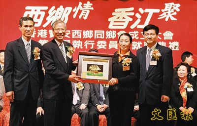 創會會長黃坤(左二)代表接受深圳市外事僑致送的紀念品。