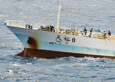 ■11月16日於肯尼亞沿海被索馬里海盜劫持的中國天津漁船「天裕8號」。
