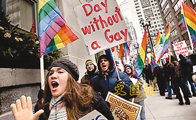 美國同性婚姻支持者最近發起「沒有同志的一天」(Day Without a Gay)抗議活動,藉此向世人顯示在日常生活和經濟活動中,同性戀者及其支持者佔有多麼重要的位置。