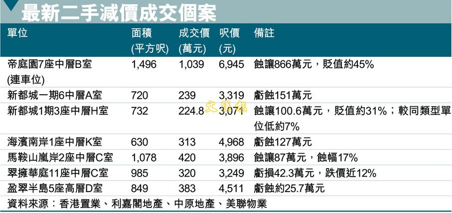 資料來源:香港置業、利嘉閣地產、中原地產、美聯物業
