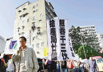 【本報訊】受重建影響的觀塘裕民坊一批業主周日遊行,反對市建局提出的賠償方案,遊行中市建局被譏「利用金融海嘯榨取民產」,小業主要求市建局公開財務數據及測量師報告。