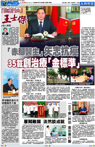而今,「內鏡結合碘染色技術」已被行內公認為診斷早期食管癌的「金標準」,「透明套帽內鏡黏膜切除術」也因治療效果好、併發症少、醫療費用低而被普遍推廣。然而談起這一切,王士傑卻淡淡地說:「這是經過了幾代人的努力、凝聚了很多醫療專家心血的成果,我只不過是一個組織者跟參與者,為祖國的抗癌事業盡了自己的一份力而已。」
