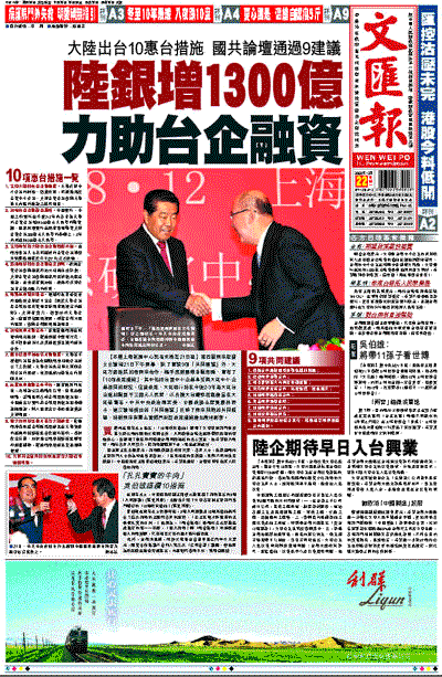 此外,台灣消息稱,海峽交流基金會董事長江丙坤今天表示,經貿合作協議不會列入第三次「江陳會談」議題。但他認為政府應在適當時機提出,內容則可參考日本、東南亞經驗。
