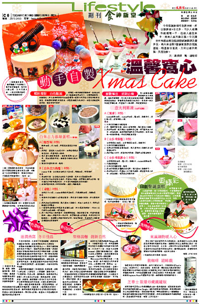 今年聖誕節碰巧在周末前,所以假期有4日之多,不少人趁機外遊輕鬆一下,也有人留在家中,與家人享天倫之樂。今次請來帝苑酒店兩位糕餅廚師謝萬錚及黃仲安,教大家自製2個簡單易做的聖誕蛋糕,既富節日氣氛,又可以親子同樂,共度佳節。