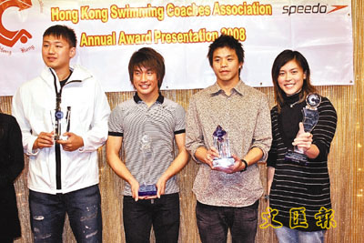【本報訊】(記者 潘志南)香港游泳教練會昨晚舉行周年頒獎禮,港隊「大師姐」蔡曉慧(見圖)蟬聯最佳女泳手,而男泳手則由男子100米自由泳香港紀錄保持者林政達奪得。蔡曉慧昨晚在獲獎後表示,在明年東亞運結束後將會退役,退役後會轉到幕後幫助香港泳壇後輩。另外,蔡曉慧同時宣布從個人獲得20多萬元「游向北京」的獎金中,撥出5萬元成立「蔡曉慧游泳基金」,每年資助一位有潛質的青年泳手。