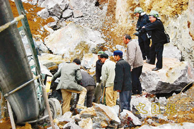 12月23日13時許,廣西靖西縣龍邦鎮一臨時石料場發生山體崩塌事故,5人被壓死。所有死者遺體已全部找到。 新華社