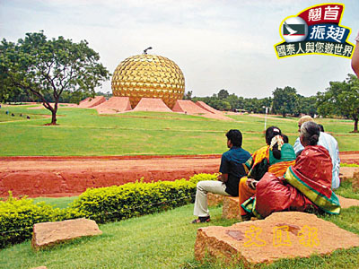 Auroville此字源於法文,Auro是黎明,ville是小鎮。香港有航班直航欽宗,再坐約3個小時的車程便到達「黎明之城」。這個文化村落已有40年歷史,由法國人Mirra Alfassa所創,人家都叫她為mother。她受印度智者Sri Aurobindo的影響,要建立一個大同的和平世界,不分彼此,人人平等。要在這裡居住,毋須信奉任何宗教,只要申請被接納,每天當4個小時義工便可以了。