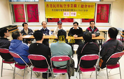 ■香港民用航空事業職工總會昨召開5場諮詢會,向HAS員工解釋資方提出的獎金方案,及諮詢員工意見。本報記者莫雪芝 攝