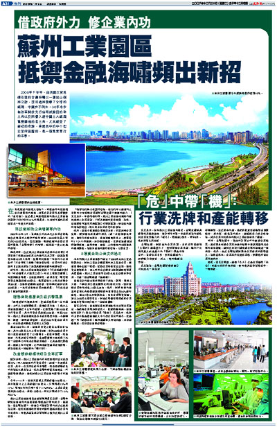 統計表明,蘇州工業園區的外向型經濟所佔比重超過70%,而入駐園區的外資企業中,超過一半是歐美企業。其中,企業所生產的半導體、液晶面板等產品的市場也以歐美為主。此次金融海嘯從美國發生,然後影響到歐洲,因此對蘇州工業園區的影響不可避免。