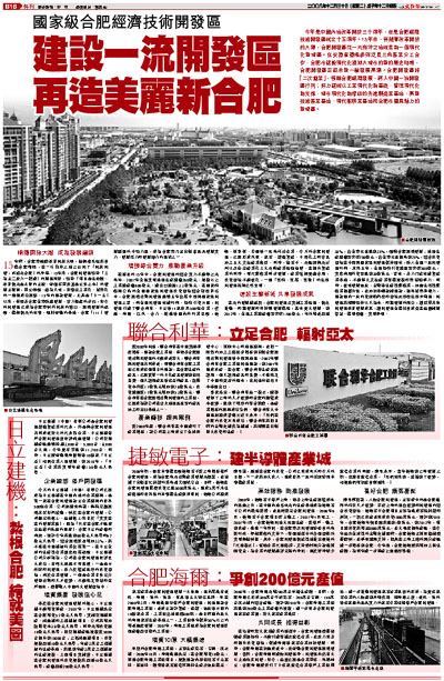 今年是中國內地改革開放三十周年,也是合肥經濟技術開發區成立十五周年。15年來,伴隨著改革開放的大潮,合肥開發區從一片崗沖之地成長為一個現代化新城區。在安徽省積極參與泛長三角產業分工合作、合肥市建設現代化濱湖大城市的新的歷史時期,合肥開發區正迎來新一輪發展高潮。合肥開發區將「二次創業」,領跑合肥經濟發展,跨入中國一流開發區行列;努力建成以工業現代化為基礎、管理現代化為支撐、城市現代化為標誌的先進製造業基地、高新技術產業基地、現代服務業基地和合肥市獨具魅力的新城區。