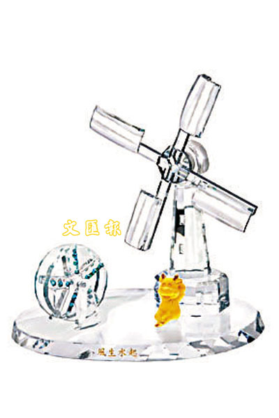 人人都爭著去車公廟轉風車祈福轉運,這款水晶風車配上水晶運水車,還有趣致可愛以999.9純金打造而成的金牛,擺放家中或辦公室,能天天為你帶來好運,貨如輪轉,風生水起。