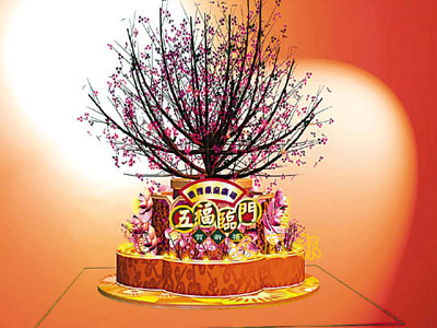 在港灣豪庭展出的巨型桃花,寓意大展鴻圖、花開富貴。