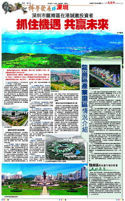 此前的龍崗區借助產業園區和房地產項目大型招商推介會已於2008年12月18日在深圳舉辦,此次招商推介會簽約項目10宗,投資總額達到29.9億人民幣。