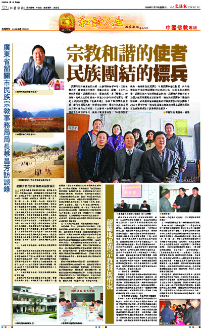 韶關市位於廣東省的北部,北接湖南省郴州市、江西省贛州市,南連珠江三角洲,是粵北政治、經濟、文化中心和交通樞紐。韶關歷史悠久,源遠流長,是「馬壩人」的故鄉、石峽文化的發祥地。有著2100多年的城市歷史,歷史上的韶州被譽為「嶺南名郡」,孕育了陳朝重臣侯安都、唐代名相張九齡、宋朝名臣余靖、禪宗六祖惠能等傑出人物。境內山川秀美,人文薈萃。改革開放初期,佛教還沒完全恢復的年代,廣東人曾自豪地說:「中國佛教在廣東,廣東佛教在韶關」,可見韶關寺廟之影響,而其他宗教似乎也適應韶關這片紅色的土地,發展也是非常迅猛,韶關宗教大市的稱號當之無愧。韶關境內還擁有四十三個少數民族聚集生活在這裡,讓壯美的韶關多了濃濃的神秘感,如何處理這紛繁複雜的民族與宗教的諸多關係?2009年開年伊始,記者迎著粵北微微的寒風在韶關市民族宗教事務局採訪了該局局長蔡昌芳。