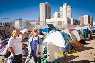 ■去年10月,美國內華達州賭城里諾市失業率高企,收容所爆滿,只得設帳篷村收容流落街頭者。資料圖片