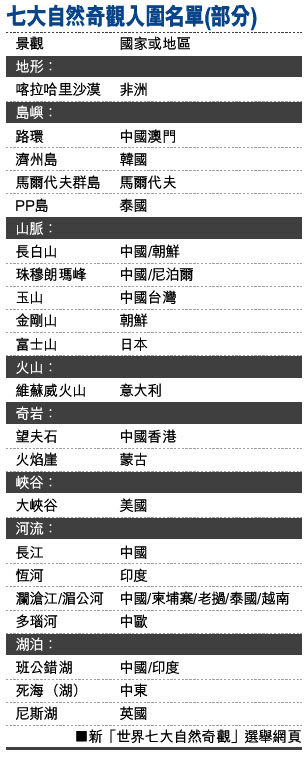 七大自然奇觀入圍名單(部分) (圖)