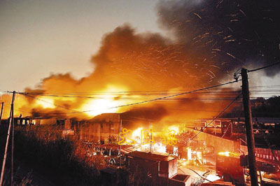 流浮山輞井圍一個廢料回收場,昨日傍晚6時30分發生火警,消防員到場後15分鐘升為三級,現場火勢猛烈,釋出大量濃煙,火場涉及兩間鋅鐵皮屋,面積約30乘100米,消防員需接駁多條水喉到現場救火,並動用4條喉及4隊煙帽隊不停灌救,火場中有個由貨櫃箱改裝的寫字樓,幸所有員工已下班,而附近有多間木廠,消防控制火警免被波及,至深夜仍未救熄,火警中幸無人受傷。