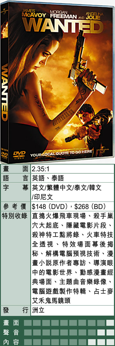 故事有張力及內心掙扎,不過卻比不上連場激戰的動作戲碼,占士麥艾禾縱然操得一身肌肉仍不夠看頭(可能為配合原本頹廢青年的感覺,他就稱職有餘),安祖蓮娜祖莉反倒成了主角,尤其最後一幕的子彈3600迴環射,挑戰人類想像更添幾分淒美,難怪她能穩站荷里活一姐的位置。最後一場大戰也不得不看,衛斯里單挑木人巷,一字曰:勁!