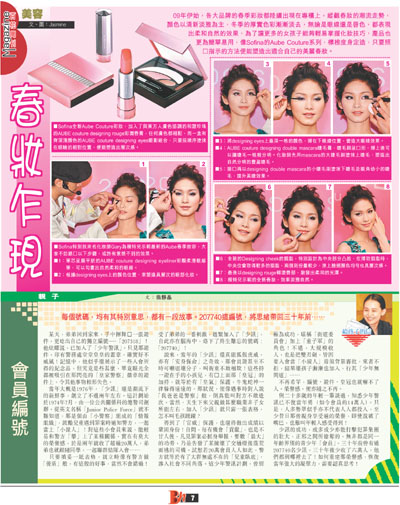 09年伊始,各大品牌的春季彩妝都陸續出現在專櫃上,縱觀春妝的潮流走勢,顏色以清新淡雅為主,冬季的厚實色彩漸漸淡去,無論是眼線還是唇色,都表現出柔和自然的效果,為了讓更多的女孩子能夠輕易掌握化妝技巧,產品也更為簡單易用,像Sofina的Aube Couture系列,標榜度身定造,只要照著指示的方法便能塑造出適合自己的美麗春妝。
