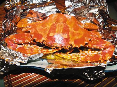 也懷念那次打開錫紙袋香氣撲鼻的感覺!於是便想到在家中以焗爐來烤焗,由於以錫紙包裹著,完全密封,所以蟹的精華得以保留。