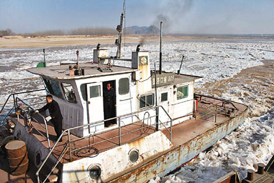 ■近日,受持續降溫天氣影響,黃河下游封河區域超過50公里。圖為一艘破冰船10日在黃河濟南濼口段上破冰。 新華社
