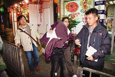 ■重案組探員帶走一名揭發命案女子返署助查。 本報記者鄺福強 攝