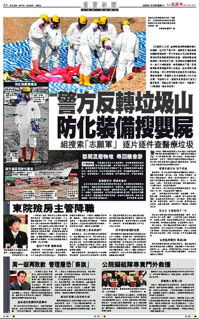 【本報訊】(記者 聶曉輝)香港東區醫院遺失的嬰屍,迄今仍下落不明,當局首次到堆填區的醫療廢物搜索。警方昨派出24名分屬東區重案組或港島區機動部隊的成員,到將軍澳堆填區展開一周的特別行動,從被掘出的醫療廢料中,進行大規模搜索,尋找嬰屍的下落。警務處東區刑事總督察周少棠指出,由於廢料充滿高危物品,警方會採用環保署最高安全規格裝備搜尋嬰屍。警員穿上的全副價值1,100元的裝備,包括防化衣、過濾有毒物質的口罩及3層手套等,警員於首天搜索行動中,共處理了1.5噸廢料,惜未有發現。
