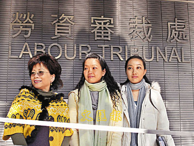 ■3名申訴人(左起)關笑華、胡綺薇及何潔雯,入稟追討假期薪金,獲勞資審裁處裁定勝訴。本報記者鄭啟源 攝