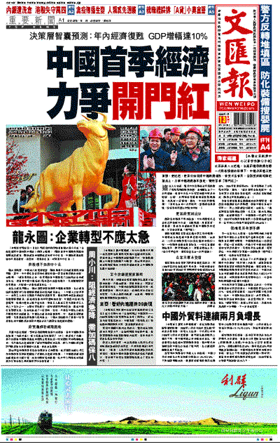 ¡@§@¬°´x´¤«H®§³Ì¥þ±Åv«Âªº¨Mµ¦¼h´¼Ån¡A±iº~¨Èªº¹w´Á»·¤ñ¥~¬É¼ÖÆ[¡A»{¬°¤¤°ê¥ø·~¦b¤µ¦~²Ä¤@¡B²Ä¤G©u«×´N·|¦n°_¨Ó¡C¥L«ü¥X¡A¡u²{¦b¿ûÅK·~¤w¸g¶}©l´_µd¡A¤Æ¤u·~¡B«Ø§÷¤]¶}©l´_µd¡A¦b³oºØ±¡ªp¤U¡A¤¤°ê¸gÀÙ¤@¦~´N¥i¥H«ì´_¡C2009¦~ªº¸gÀÙ¼Wªø±q²Ä¤@©u«×¶}©l´N·|¦^¤É¡A¥þ¦~ªºGDP¼Wªø¥i¯à·|¹F¨ì10%¥ª¥k¡v¡C