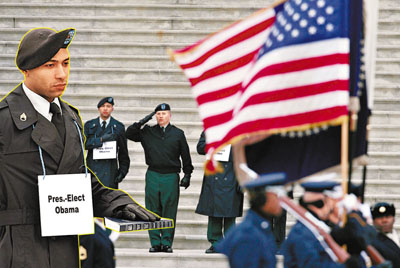 下周二的就職禮,預料會吸引多達300萬人,華盛頓警方計劃部署8,000名警員和保安人員,其中一半人手要由其他部門借調;軍方亦會出動1.15萬士兵支援,比布什2005年就職禮多出4,500人。其中5,000士兵會部署在活動場地,其餘則協助控制人群、通訊、保安、醫護、物流、偵測武器和其他行動。