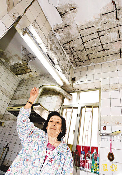 ■本港部分樓宇漸趨老化,意外頻生。市民陳太說,廚房天花板曾有如磚頭一樣大小的石屎從天而降。 資料圖片