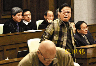 ■黃毓民及陳偉業再次在立法會會議上辱罵林瑞麟,未等主席驅逐,兩人就自行離場。 本報記者梁祖彝 攝