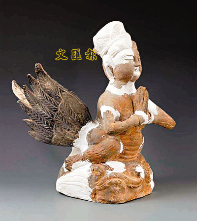 灰陶迦陵頻伽像 Grey pottery figure of a Kalavinka