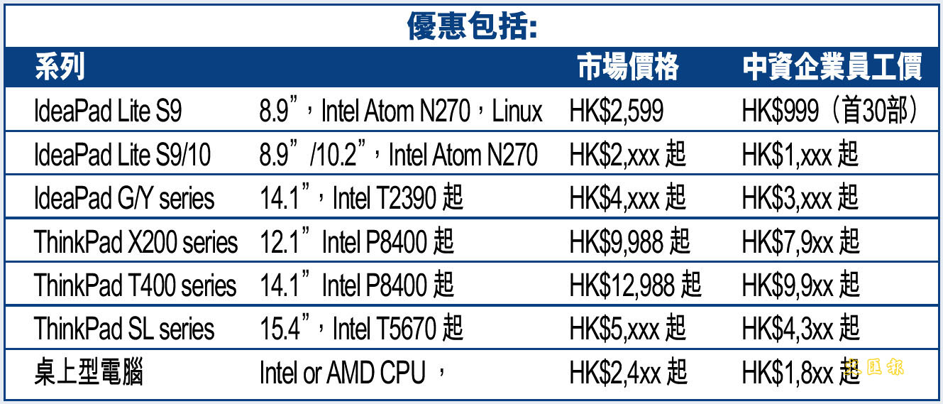 聯想向中企員工推大優惠 今日明日特賣 折扣高達60% (2009-01-17) (圖)