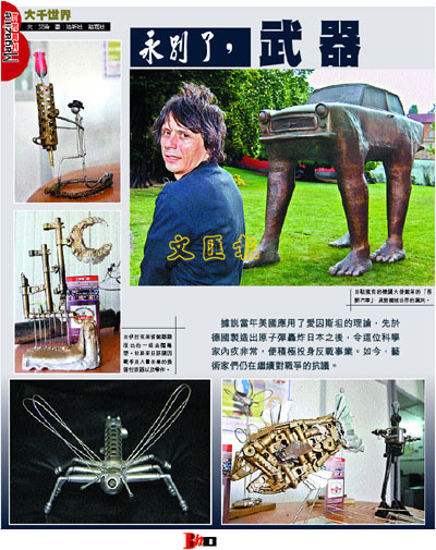 據說當年美國應用了愛因斯坦的理論,先於德國製造出原子彈轟炸日本之後,令這位科學家內疚非常,便積極投身反戰事業。如今,藝術家們仍在繼續對戰爭的抗議。