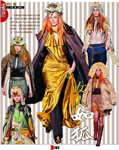 一股寒潮終於給香港帶來冬天的感覺。羽絨麼?皮褸麼?還是看看法國設計大師Jean Paul Gaultier設計的秋冬時裝,凸顯的豹紋和綢緞的結合充滿貴氣,而那頂狐狸帽壓倒了一切,它的出場必能驚艷四座。
