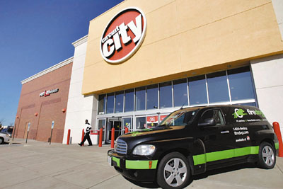 ■16日,Circuit City Stores店員走出已停業的商店。 美聯社