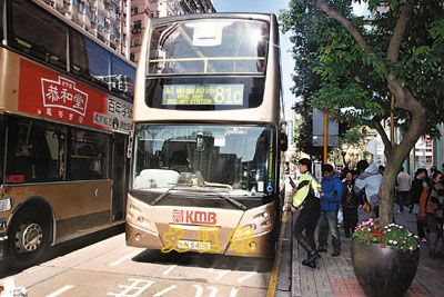 ■油麻地彌敦道發生九巴急煞導致女乘客受傷送院事件。本報記者蔣焯文 攝