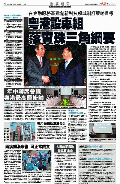 同時,粵港雙方又同意,利用《綱要》賦予的契機,在多層面推動粵港合作,而為了使粵港澳三地可適時共謀對策,開展粵港澳三地共同規劃,粵港兩地政府又會聯同澳門特區政府,商討建立三地共同開展區域合作的機制和合作內容。