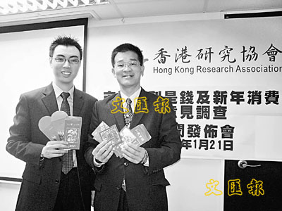 ■香港研究協會的調查發現,59%派利是的受訪者今年平均每封利是金額為20元。左為協會主席蘇祉祺。 本報記者嚴敏慧 攝