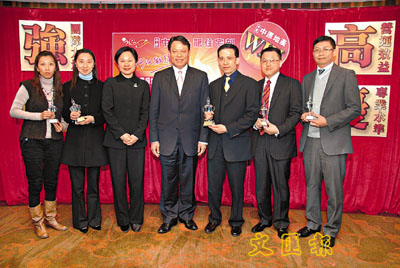 中原地產九龍區董事劉瑛琳表示,為表揚優秀同事,公司毫不吝嗇,特別為5位於去年成績最佳的主管,包括:中原豪宅STATELYHOME九龍豪宅高級分區聯席董事梁瑋麟、王婉婷、楊思煒、分區聯席董事黃有雄,以及海逸豪園(B組)首席分區營業經理王淑儀,送上名貴水晶杯,更邀得中原地產港澳行政總裁黃偉雄親臨頒發。