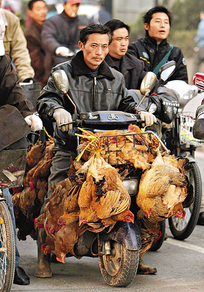 ■在上海市區,一名男子正在運輸活雞。 資料圖片
