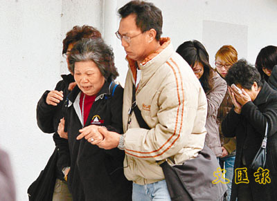 ■死者周勝有的媽媽到殮房認屍後,悲傷離去。本報記者蔣焯文 攝