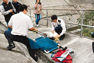 ¡@·RÅ@°Êª«¨ó·|¤Hû¨ì³õ¡Aµo²{¤Þ¤ô¹D²`3¦Ì¡A¤@®É¶¡µLªk¬@±Ï¡A¹En¨D®ø¨¾û¨ó§U¡A¥Ñ®ø¨¾û§Q¥Î¿û±è¶¶§Qª¦¤U¤Þ¤ô¹D¡A¦A¥H®»ª¯¯Á®M¦í𪯪ºÀV³¡¡A¦b¤S©Ô¤S©ï¤U¡A¦X¤O§â¨ü§xªºðª¯±Ï¤W¦a±¡C¸Ó¤üºÃ¦]¨üÅå¡A¤@«×±ý±Ã¤ãÂ÷¥h¡A¦ý¨ü¨î©ó·RÅ@°Êª«¨ó·|¤Hûªº®Mª¯¯Á¡A³Ì«á¸g¥b¤p®Éªº¦w¼¾¡A¸Óª¯±¡ºü¥¥ñ«á¡A¦³Ãö¤Hû¤~±N¨e±a¨«Àø¶Ë¡C