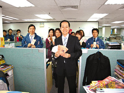 利嘉閣廖偉強派發開工大利是,並祝願樓市「牛氣沖天」。