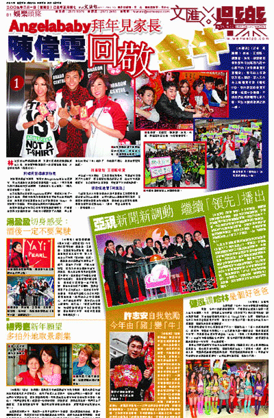陳偉霆承認新年期間,緋聞女友Angelababy有去他家拜年,問他母親對女友是否感到很滿意?他說:「我只見媽咪派利是給她時笑容燦爛,又讚她真人比上鏡靚。(媽咪有沒有催婚?)沒有。」