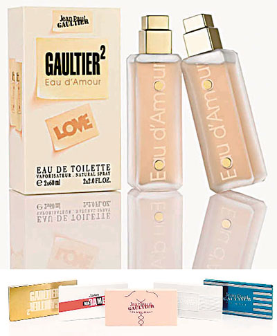 ■Jean Paul Gaultier各款香氛以愛的手札為主體,讓你隨時貼上親筆甜言蜜語,隨時隨地散發淡雅的香氣。GAULTIER2系列,則代表心心相印,這款限量版的Eau de Toilette男女合用,上有手寫的 Eau d'Amour 字樣,更添佳節浪漫。