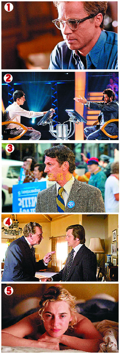 4《驚世真言》:導演朗侯活,3月5日香港開畫,重組1977年英國電視名嘴大衛科斯訪問下台美國總統尼克松的獨家訪問,誘導尼克松首次透露水門事件的真相。