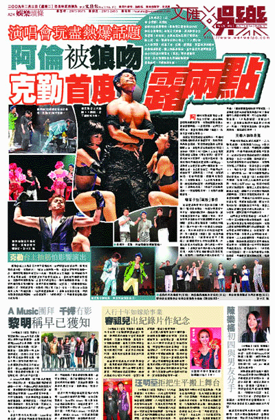 【本報訊】(記者 李思穎)紅館裝修後的首個演唱會「香港東亞運動會2009左麟右李演唱會」前晚正式開鑼,譚詠麟和李克勤這對「老拍檔」名副其實為紅館打響頭炮,獻上聲、色、藝俱全的開心晚上,二人更在台上大放笑彈,把章子怡、倪震、顏福偉、郭富城和熊黛林的熱爆話題逐一擺上檯高談闊論,當中最抵死是揶揄章子怡在沙灘被外籍男友「索股」事件是聞死氣喉,而克勤提到老友周慧敏時顯得避重就輕,不想無朋友做。